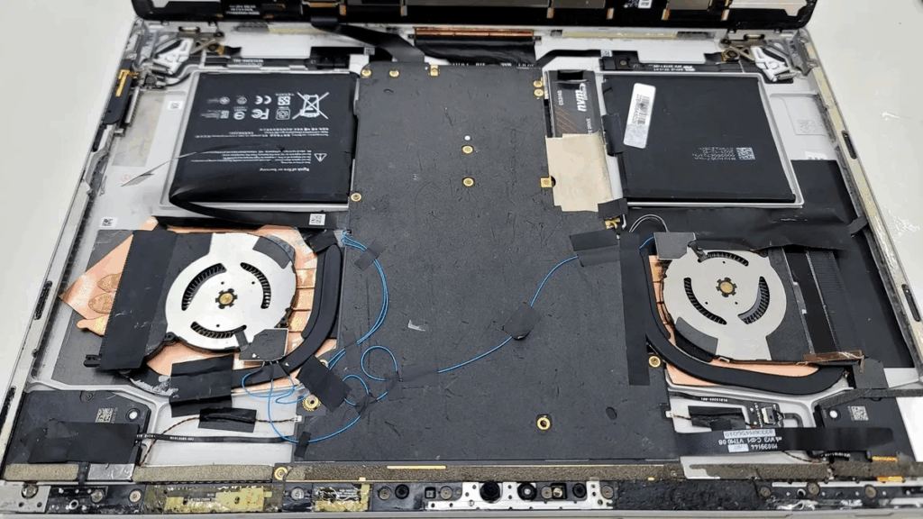 Surface Book 15″ cameras, sensors, speakers, fans, vapor chamber, graphite heat spreaders, and associated diecut + stamped components